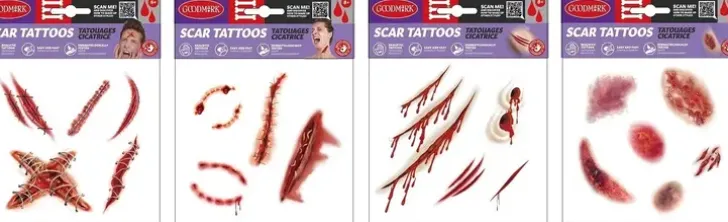 Luo Uskottavuutta Halloween-Asuusi Tällä Arpilajitelmalla. Lajitelma Sisältää Erilaisia Arpia, Jotka Voidaan Kiinnittää Helposti Iholle.Huom! Hintaan Sisältyy Vain Yksi Tuote. Verkkokaupasta Ostettaessa Tuotteen Mallia Tai Väriä Ei Voi Valita. Toimitamme Sellaisen Tuotteen, Joka On Saatavilla.