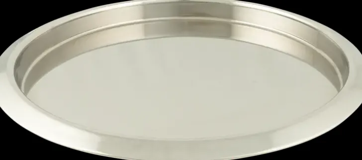 Ruostumattomasta Teräksestä Valmistettu, Pyöreä Tarjotin. Halkaisija 35 Cm.
