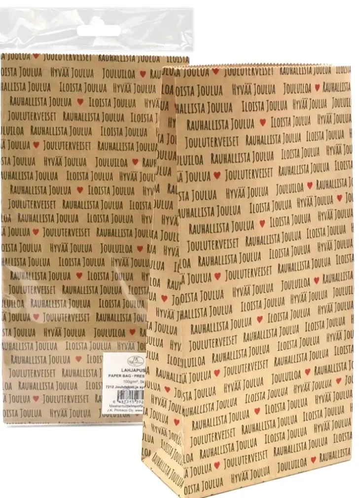 J.K. Primeco Lahjapussi Jouluteksti Ja Sydamet Natur 5 Kpl