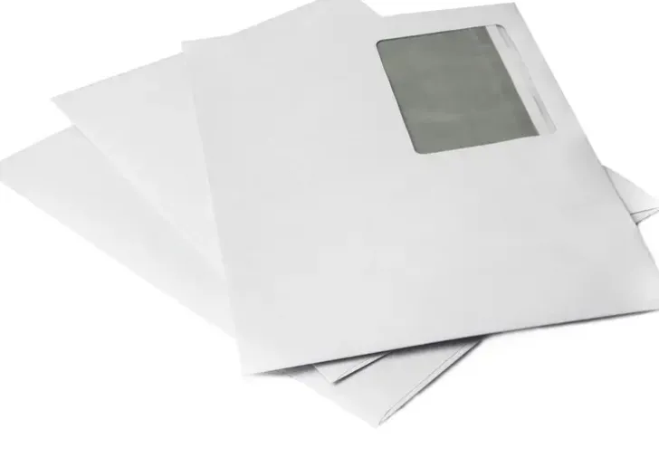 Isoikkunakuori, Jossa Vastaanottajan Ja Lähettäjän Tiedot Näkyvät Ikkunasta Vakioasettelun Mukaisesta Asiakirjasta.
