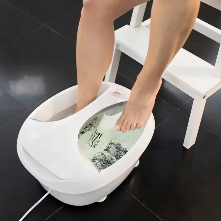 Erittäin Tehokas Premiun Jalkakylpy Medisana Fs888. Laite Lämmitää Veden Nopeasti 35 – 45 C Asteen Lämpöiseksi. Laitteen Pohjassa Olevat Hierontarullat Tarjoavat Nautinnollista Ja Rentouttavaa Hierontaa Väsyneille Jalkapohjille, Samalla Kun Voimakkaat Kuplat Hierovat Jalkateriä. Laitteen Voi Ajastaa Toimimaan 10 Minuutista 60 Minuttiin. Jalkakylpy Jäljittelee Todellista Spa-Nautintoa Ja Siinä On Integroitu Säiliö, Jonne Voi Laittaa Lempituoksu Sekä Laitteen Vaihtuvat Ambientte Valot Tuovat Ripauksen Luksusta. Jalkakylpy Sopii Jalan Kokoon 45 Asti.