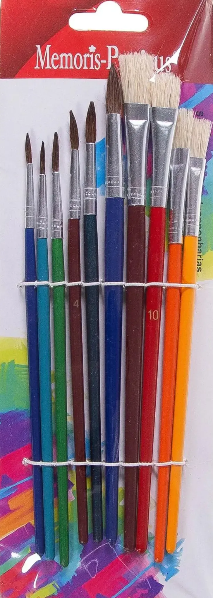Sivellinsetti, Jossa Kymmenen Sivellintä. Puuvarsi Ja Sivellin Luonnoharjasta.