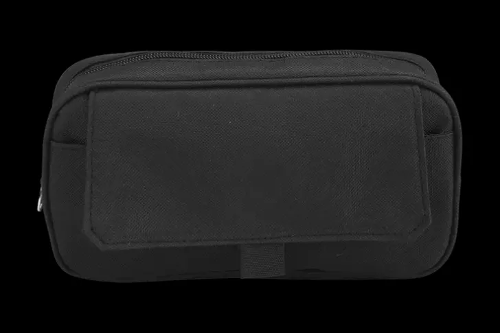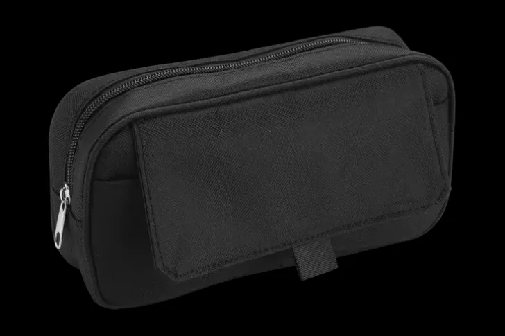 Musta Penaali, Materiaali Tekstiiliä. Suljetaan Vetoketjulla. Edessä Läppätasku. Koko 22 X 12 X 5 Cm.
