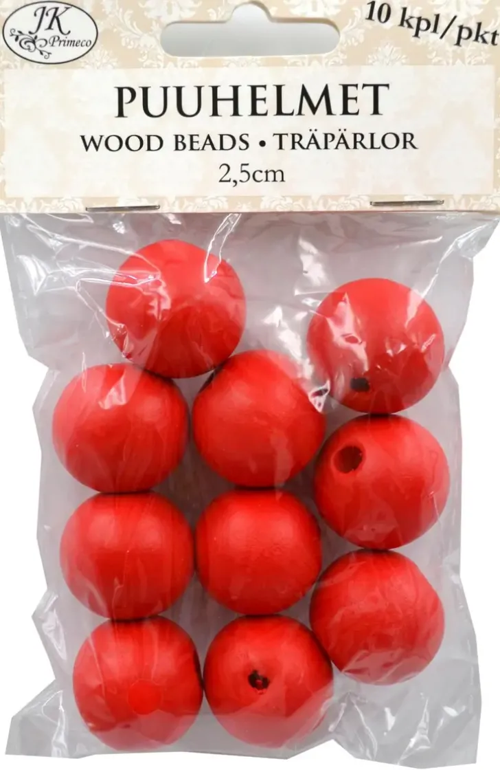 Puuhelmet Punainen 2,5Cm 10Kpl/Pkt