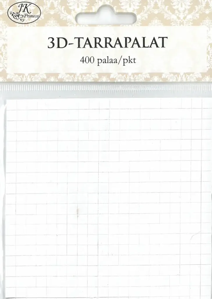 Pakkaus Sisältää 400Kpl 3D-Tarrapaloja, Joilla Saa Luotua Kolmiulotteisuutta Paperiaskarteluun. Palan Paksuus 2Mm Ja Koko 5Mm X 5Mm. Tarra Molemmilla Puolilla.