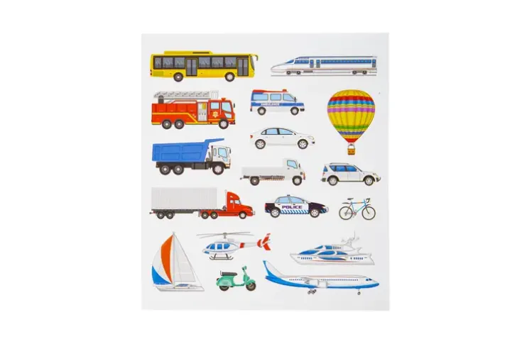 Kulkuneuvo-Aiheiset Tarrat Korttien Askarteluun Tai Vaikka Lahjapaketin Koristeluun. Paketissa 1 Tarra-Arkki.