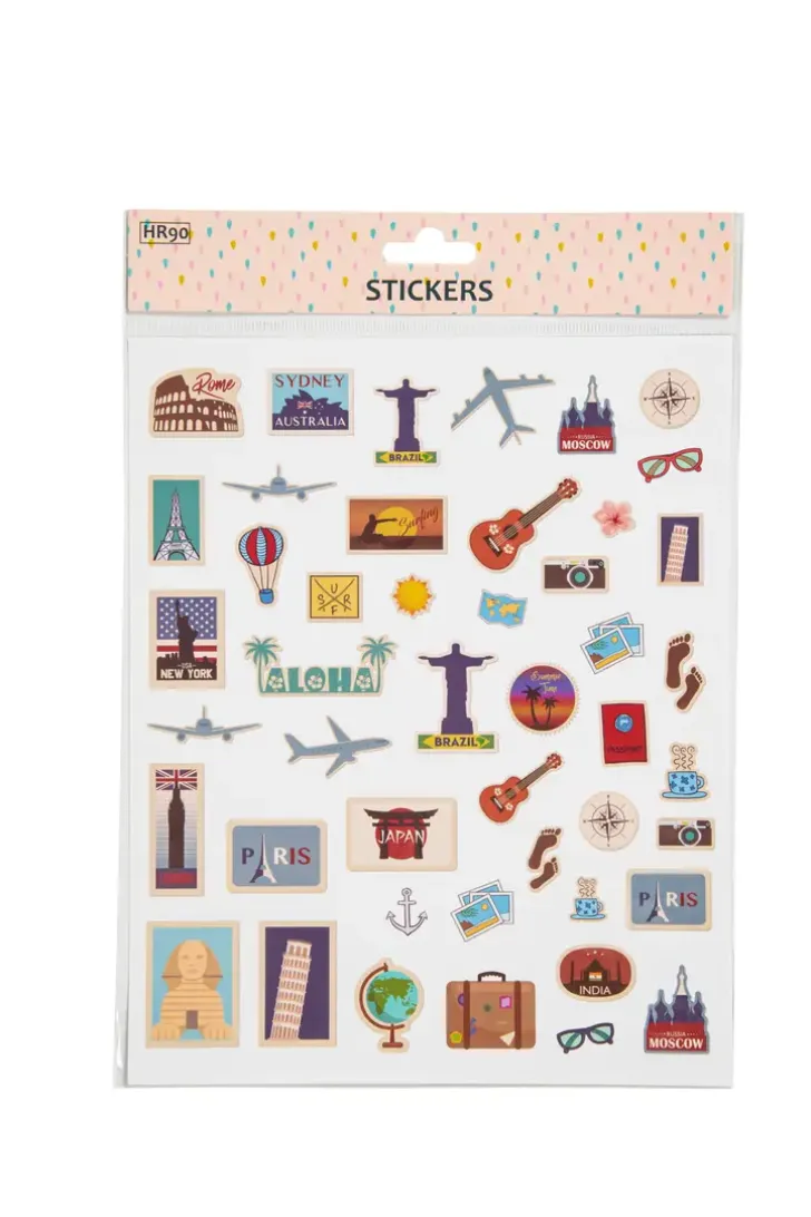 Matkailuaiheiset Tarrat Korttien Askarteluun Tai Vaikka Lahjapaketin Koristeluun. Paketissa 1 Tarra-Arkki.