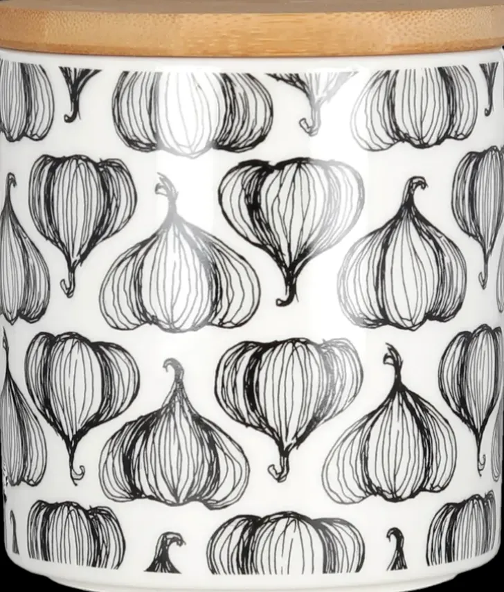 Valkosipulipurkki Puukannella Kätevään Säilytykseen Keittiössä. Purkissa On Sivuilla Reiät Ja Kansi Bambua. Tuote On Valmistettu Korkealaatuisesta Vitroposliinista.