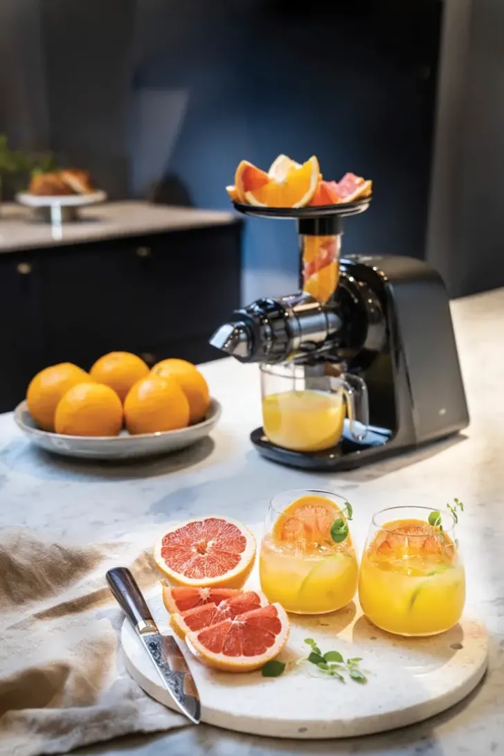 Täydellisen Mehun Puristamisessa Ei Ole Kyse Tehosta, Kierroksista Tai Terien Lukumäärästä. Kyse On Osien Yhteistoiminnasta. Prosessista, Jossa Viimeistelty Teknologia Puristaa Aineksista Mehua Kuin Jos Se Tehtäisiin Käsin. Hitaasti, Perusteellisesti Ja Huolellisesti. Prosessi, Jossa Kuidun Solut Eivät Rikkoonnu Ja Vihanneksen Luonnollinen Maku, Väri Ja Ravinteet Säilyvät Mehussa. Luonnollisesti, Tuoreesti Ja Raikkaasti.Juicemaster Fresh On Tehokas 150 Watin Tuoremehuprässi. Prässissä On Erittäin Voimakas Tritan Mylly, Joka Linkoamisen Sijaan Puristaa Mehun Aineksista Säilyttäen Näin Maksimaalisen Määrän Ravinteita Ja Makua. Hitaan Puristustekniikan Ansiosta Mehu Ei Hapetu. Säädettävän Sihdin Ansiosta Pystyt Puristamaan Mehua Vaivatta Niin Pehmeistä Kuin Kovista Ja Kuitupitoisista Raaka-Aineista. Tässä Myllyssä On Tippalukko, Minkä Ansiosta Voit Tarjoilla Mehua Suoraan Astiasta, Ilman Sotkua. Hiljaisen Moottorin Ansiosta Voit Huoletta Valmistaa Aamiaismehut, Vaikka Muu Perhe Nukkuisikin. Syöttöalustasta On Helppo Syöttää Vihannekset Ja Hedelmät Prässiin. Peruutustoiminnolla Voit Poistaa Mahdolliset Tukokset. Laitteessa Ei Ole Teriä Tai Teräviä Osia, Joten Se On Lapsiystävällinen. Laite On Helppo Puhdistaa, Sillä Kaikki Osat Ovat Irrotettavia.Purista Vihannekset, Lehtivihreät Ja Hedelmät Mehuksi – Tuorepuristetusta Mehusta Saat Keholle Tärkeät Mineraalit, Vitamiinit, Hiilihydraatit, Entsyymit, Antioksidantit, Aminohapot Ym. Helposti Ja Nopeasti Imeytyvässä Muodossa.-150 Wattia-Säädettävä Sihti Mahdollistaa Kaikenlaisten Raaka-Aineiden Puristamisen-Tritan Mylly-Tippalukko-Hiljainen-Peruutustoiminto-Syöttöalusta-Helppo Puhdistaa-Takuu 5 Vuotta