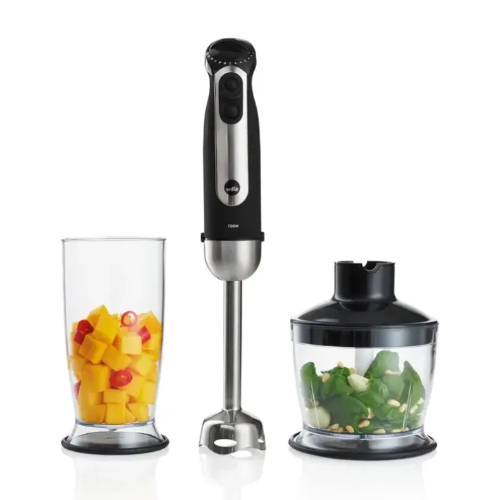 Tehokas Teräspintainen Sauvasekoitin 700 Watin Teholla. Säädettävä Nopeus. Kumipintaisesta Kahvasta Saa Hyvän Otteen. Mukana Vispilä, Seinäkiinnike, Kumipohjainen Astia Ja Minisilppuri Esimerkiksi Vihanneksia Ja Lihaa Varten. Kaikki Muut Irrotettavat Osat Voidaan Pestä Astianpesukoneessa, Mutta Minisilppurin Kantta Ei Tulisi Pestä Astianpesukoneessa. 700W. Säädettävä Nopeus. Kumipintainen Varsiosa Takaa Hyvän Otteen. Irrotettavat Astianpesukoneen Kestävät Osat (Katso Tarkemmat Tiedot Käyttöohjeesta). Vispilä Ja Sekoitusastia Mukana. Minisilppuri Kannella Ja Liukumattomalla Pohjalla Sipulin, Vihannesten Ym. Pilkkomiseen. Takuu 5 Vuotta.