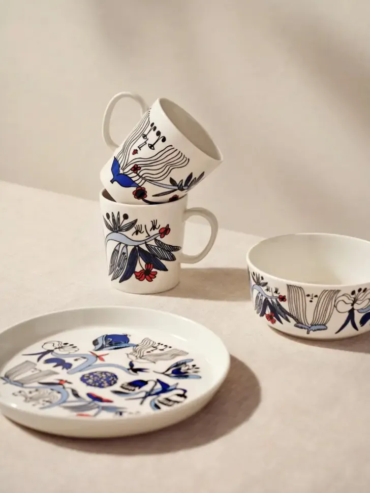Taiteilija Armi Tevan Luoma Puutarhurit-Kuvio On Raikas Sinisävyinen Puutarha, Jossa Kasvien Lomasta Kurkistelevat Leikkimieliset Hahmot. Puutarhurit 19Cm Lautanen Sopii Kooltaan Niin Aamiaiselle Kuin Alku- Ja Välipaloille. Yhdistele Puutarhurit-Koristetta Muiden Arabian Rakastettujen Kuvioiden Kanssa.
