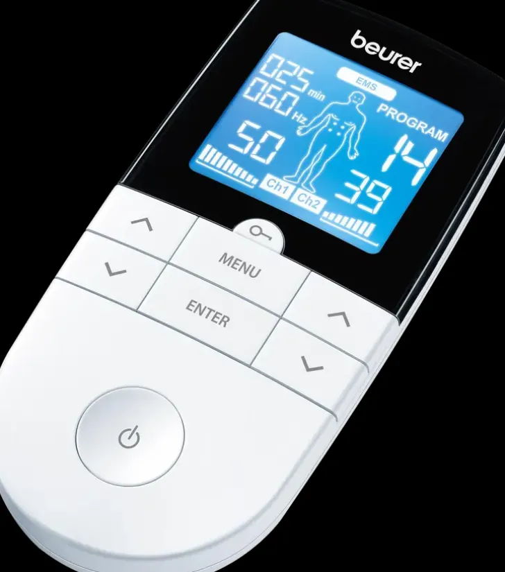 Beurer Em49 Sisältää Kolme Perustoimintoa:Hermoratojen Sähköinen Stimulaatio (Tens)Lihaskudosten Sähköinen Stimulaatio (Ems)Sähkösignaaleilla Aikaansaatu Hierontavaikutuslaitteella Voidaan Parantaa Yleistä Hyvinvointia, Lievittää Kipua, Ylläpitää Kuntoa, Rentoutua, Kuntouttaa Lihaksia Ja Ehkäistä Väsymystä. Sähköstimulaatiolaitteiden Vaikutus Perustuu Kehonosien Impulssien Muodostamiseen Ja Siirtämiseen Elektrodeilla Ihon Kautta Hermo- Ja Lihassäikeisiin.Tens Merkitsee Hermojen Sähköistä Ärsytystä Ihon Kautta. Tens On Kliinisesti Todennettu, Tehokas, Haittavaikutukseton Menetelmä, Joka On Sallittu Käytettäväksi Kipujen Hoitoon.Ems-Menetelmää (Lihasstimulaatio) Käytetään Mm. Perinteisen Lihasharjoittelun Täydennyksenä Lihasryhmien Suorituskyvyn Parantamiseksi Ja Kehon Muokkaamiseksi.Hierontatekniikka Mahdollistaa Tuntemukseltaan Ja Vaikutukseltaan Oikeaa Hierontaa Muistuttavalla Ohjelmallaan.Digitaalisen Ems/Tens-Laitteen Kahden Erillisesti Säädettävän Kanavan Avulla Voit Asettaa Impulssien Voimakkuuden Toisistaan Riippumattomasti Kahteen Hoidettavaan Kehonosaan Sopivaksi. Voit Esimerkiksi Stimuloida Kehon Kummankin Puolen Tai Tasapuolisesti Suuria Kudosalueita.Koska Kanavien Virran Voimakkuus Voidaan Asettaa Erikseen, Voit Käsitellä Samanaikaisesti Kahta Eri Kehonosaa. Näin Säästät Aikaa Peräkkäisiin Yksittäishoitoihin Verrattuna.