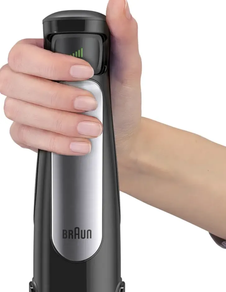 Braun Multi Quick 7 Sauvasekoitin Hyödyntää Activeblade -Teknologiaa, Jonka Ansiosta Sen Pystysuorassa Liikkuva Terä Murskaa Ja Soseuttaa Tehokkaasti Kovimmatkin Ainekset Taaten Täydellisen Samettisen Lopputuloksen Hetkessä.Braun Mq7000X Sauvasekoittimen Powerbell Plus Muotoiltu Terä On Varustettu Erityisellä Jauhantaterällä. Tämä Innovatiivinen Lisäleikkauspinta Leikkaa Enemmän Jokaisella Kierroksella Murskaten Vaivattomasti Isot Ja Kovatkin Palat. Smartspeed -Toiminnon Avulla Nopeutta Ja Tehoa Kontrolloidaan Näppärästi Kytkintä Painamalla Ja Sekoituspään Erityinen Splashcontrol Muotoilu Estää Roiskumisen Säästäen Keittiön Ylimääräisiltä Roiskeilta. Patentoidun Easyclick+ Järjestelmän Avulla Lisälaitteiden Irrottaminen Ja Kiinnittäminen Käy Kätevästi. Teho 1000W. Takuu 2 Vuotta.Myyntipakkauksen Mukana Tuleva 600Ml Bpa-Vapaa Sekoituskulho On Varustettu Selkeällä Mitta-Asteikolla.
