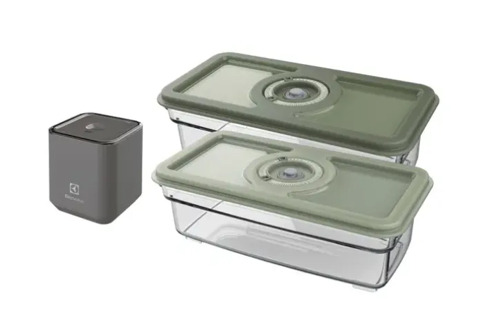Säilytä Ruokasi Tuoreena Jopa 5 Kertaa Pidempään. Create 3 Vacuum Fresh Kit. 1 X Ladattava Vakuumipumppu Ja 2 X 1 Litran Vakuumirasiat. Rasiat Soveltuvat Käyttäväksi Myös Kaikilla Vakumointilaitteilla, Joissa On Tyhjiöintiletku.