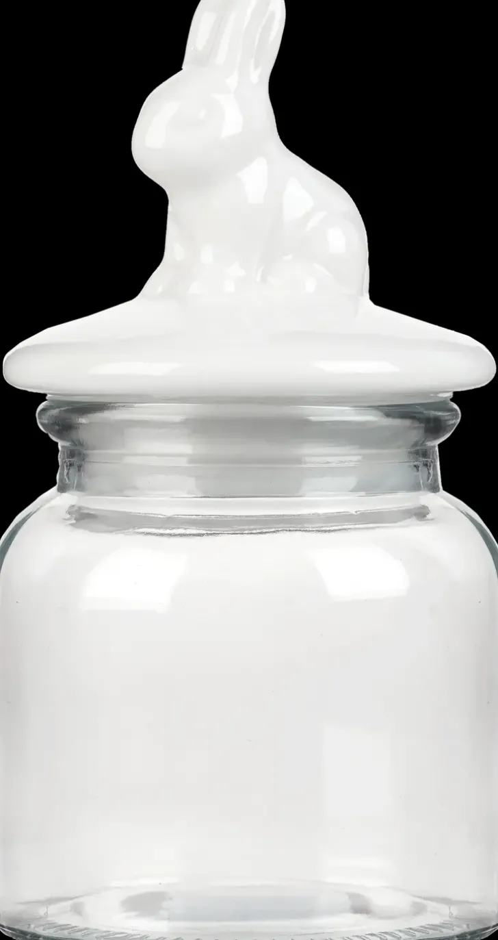 Hurmaava Lasipurkki Keraamisella Kannella, Jossa Pupuhahmoinen Otin. Tiiviste Pitää Kannen Paikoillaan Ja Suojaa Sisältöä Tuoksuilta. Tilavuus 0,6 L.
