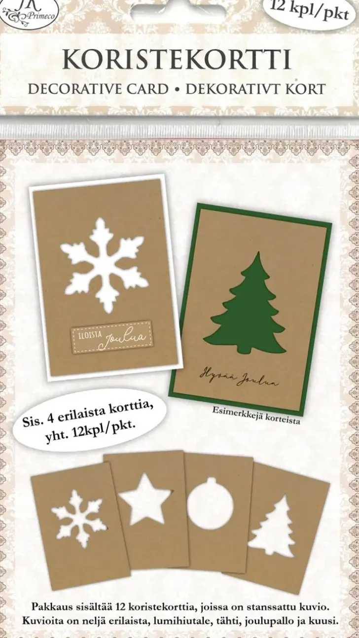 J.K. Primeco Koristekortti Joulukuviot Uusioruskea 12 Kpl