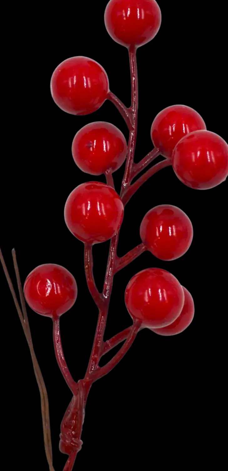 Koristemarjat Askarteluun Ja Koristeluun. Pakkaus Sisältää Kolme Kappaletta Marjaoksia, Joissa On Rautalanka. Yhden Oksan Pituus On Noin 15Cm.