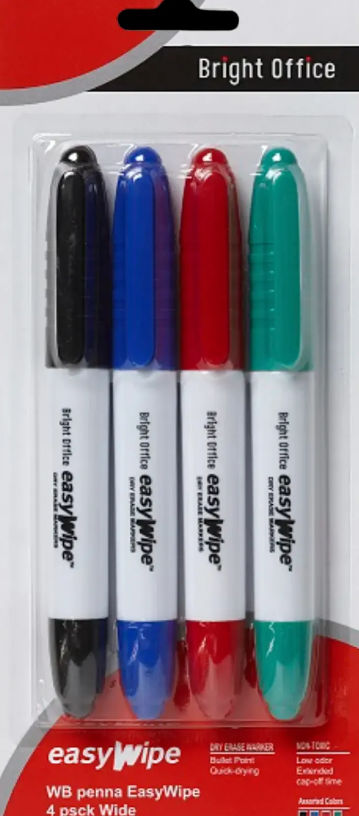 Miedontuoksuinen, Myrkytön Ja Nopeasti Kuivuva Muste. Helppo Pyyhkiä Taulupyyhkimellä Tai Liinalla. Pyöreä Kärki, Viivan Leveys N. 3-4 Mm.Värilajitelma: Punainen, Sininen, Vihreä Ja Musta.