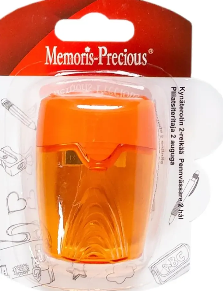 Kynäteroitin, Jossa Säiliö Ja Kaksi Reikää. Värivaihtoehtoina Oranssi, Sininen Ja Vihreä.