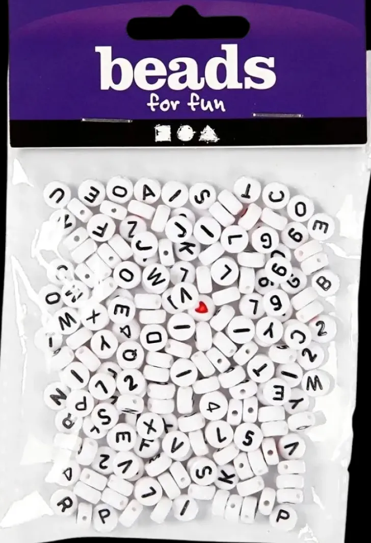 Kirjainhelmet, Valkoinen, Koko 7 Mm, Aukon Koko 1,2 Mm, 25 G/ 1 Pkk