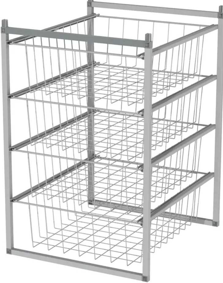 Kehikko, Jossa 4 Kpl 140 Mm Korkeita Koreja. Vapaasti Seisova Koritorni Kaapin Sisään, Vaatehuoneeseen Tai Liukuovikaapistoon. Leveys 450 Mm, Syvyys 500 Mm, Korkeus 675 Mm. Väri Harmaa.