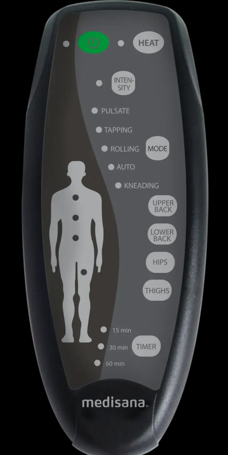 Medisana Mch Hierontaistuimessa On Neljä Hieronta-Aluetta Selän- Ja Istuimen Alueella. Valittavana On Viisi Erilaista Hierontaohjelmaa Ja Kolme Tehokkuutta. Hierontaistuimessa On Myös Lämmitystoiminto Ja Istuinta Voi Käyttää Myös Autossa Erillisen Adapterin Avulla, Joka Sisältyy Pakkaukseen.
