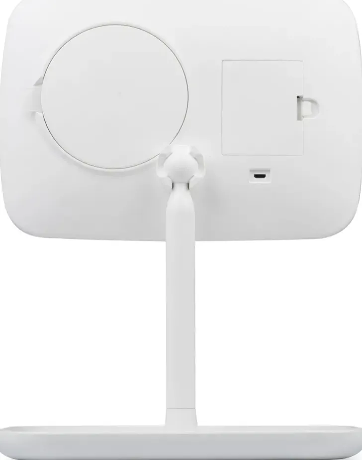 Peilissä On Hyvin Valaisevat 33 Led-Valoa. Peili Toimii Usb-Johdolla Tai Vaihtoehtoisesti Voit Käyttää Myös Paristoja. Valoissa On Muisti, Ja Ne Syttyvät Seuraavalla Käyttökerralla Samaan Tehoon, Mihin Ne Ovat Sammutettu. Peiliosa On 360 Asteta Kääntyvä. Sisältää Pienemmän Magneetilla Kiinnitettävä Peiliosan, Jossa 10X Suurennus. Meikkipeilinjalustalle Voit Laskea Esim. Meikkejä Tai Koruja.
