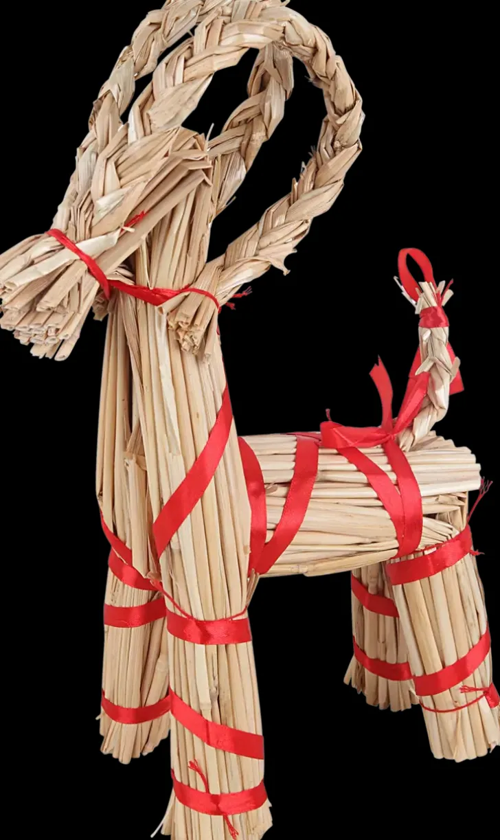 Klassinen Olkipukki Punaisilla Nauhoilla. Mitat 20 X 8 X 30 Cm.