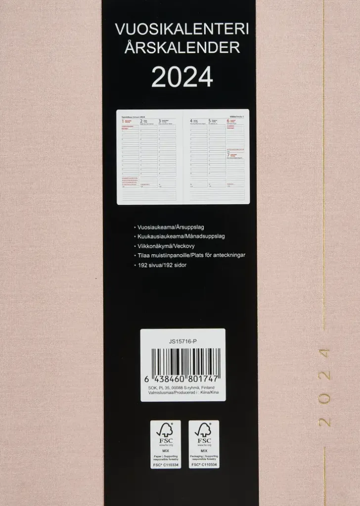 Vuosikalenteri Kangaskansilla Ja Kirjanmerkkinauhalla. Koko: A5. Kielisyys: Suomi, Ruotsi. 192 Sivua.