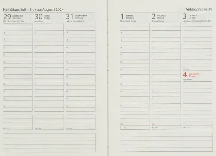 A5-Kokoinen Vuosikalenteri Korkkikansilla. Kielisyys: Suomi, Ruotsi. 192 Sivua.