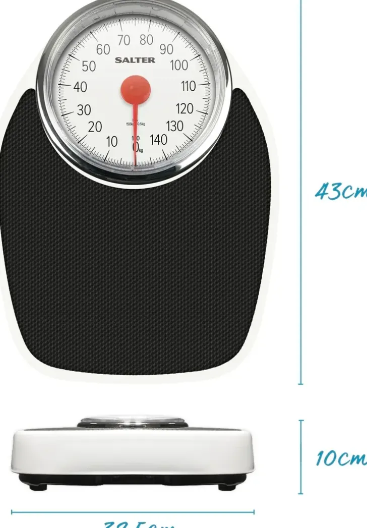 Salterin Mekaaninen Tohtorin Vaaka On Klassikkojen Klassikko. Musta Kuminen Ja Leveä Pinta Takaavat Tukevan Alustan, Jolle Astua. Suuresta Näytöstä On Helppo Lukea Mittaustulokset Aina 150 Kg Saakka 500 Gramman Tarkkuudella. Vaaka Toimii Ilman Paristoja Tai Lataamista. Salter Myöntää Tuotteelle 15 Vuoden Takuun.