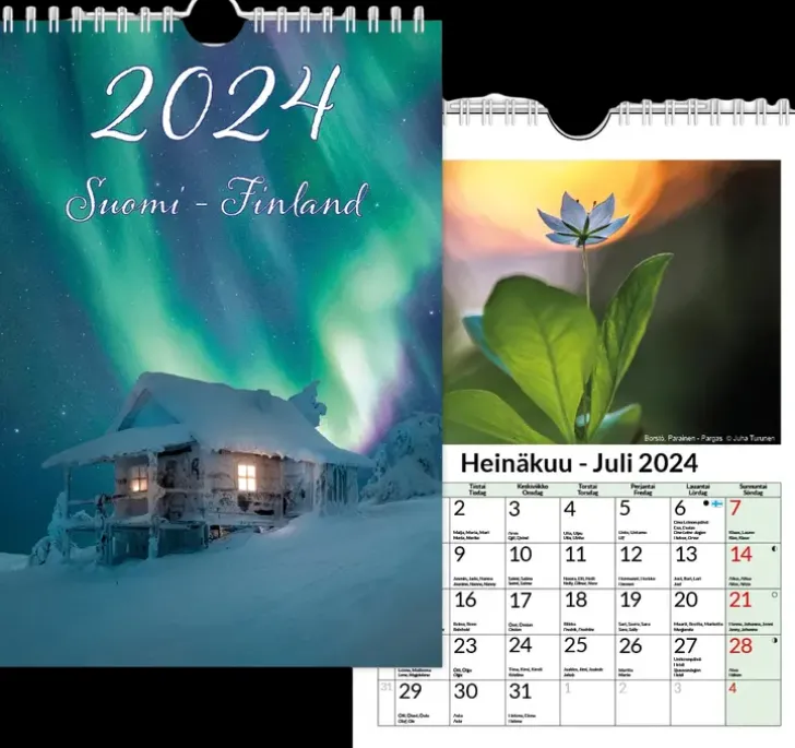 Kauniit Suomalaiset Luontokuvat; Kaksikielinen (Suomi-Ruotsi); Nimipäivät; Koko Avattuna A5; Kuvat Voi Käyttää Myös Postikortteina; Avainlipputuote
