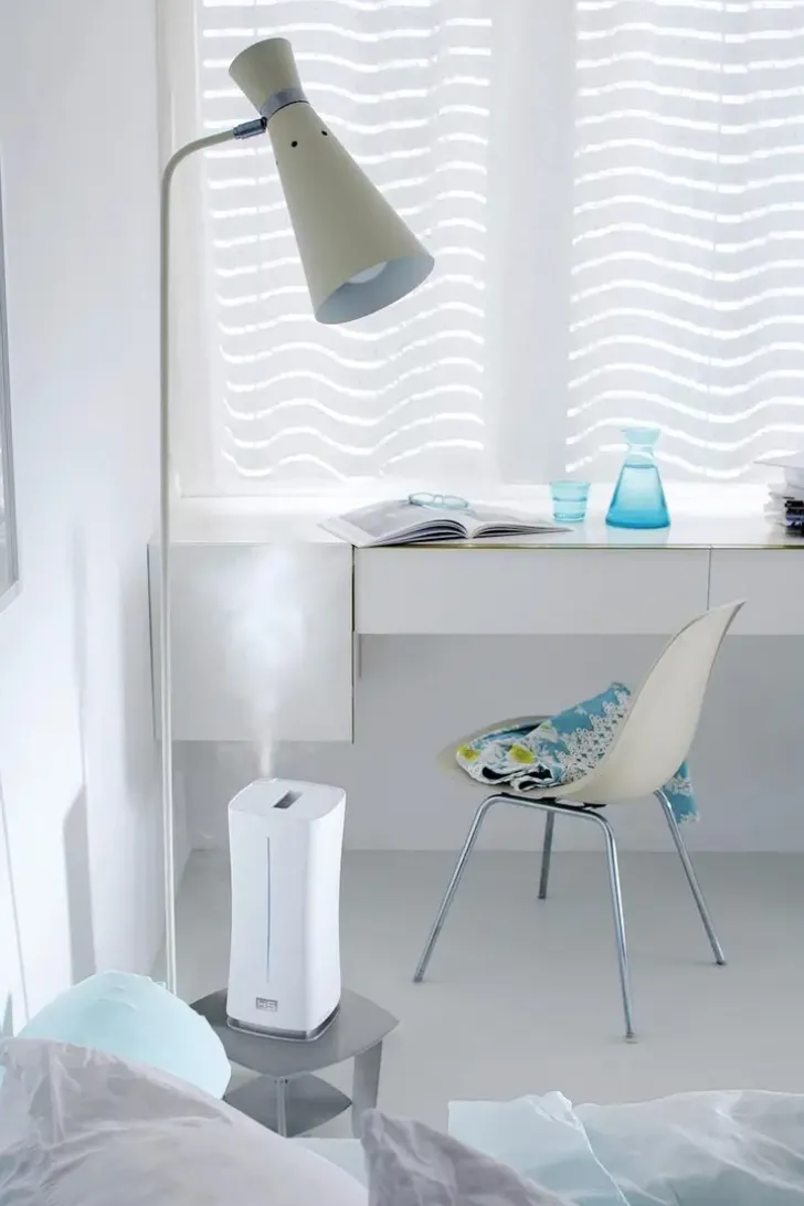 Huolimatta Pienestä Koostaan, Eva Little Ultraääni-Ilmankostutin On Erittäin Tehokas Ja Auttaa Tässä Ongelmassa Tyylikkäästi. Ultraääniteknologian Avulla Eva Little Tuottaa Sumua Joka Nostaa Nopeasti Huoneen Ilmankosteutta. Integroitu Hygrostaatti Mittaa Ilmankosteuden Ja Säätää Sen Asetettuun Arvon (30 – 75% ) Mukaisesti. Liiallinen Ilmankosteus Ei Näin Ollen Ole Huolenaihe. Adaptive Humidity™ -Teknologiansa Ansiosta Eva Little Saavuttaa Tavoitetun Kosteuden Automaattisesti, Hiljaisesti Ja Tehokkaasti. Eva Littlen Merkkivalot Voidaan Sammuttaa Esimerkiksi Makuuhuoneessa Käyttöä Varten.