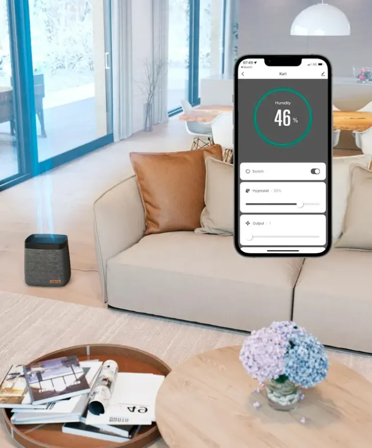 Tehokas Mutta Hiljainen! Uuden Sukupolven Tehokkuus Ilmankostuttimissa. Kostuttaa Pienellä Energiankulutuksella Suurenkin Tilan, Jopa 100M2.Hygrostaatin Ansiosta Laite Pitää Huoneen Kosteuden Aina Sopivana Ja Automaattitoiminnolla Säätää Itse Tehoa Ympäröivän Ilmankosteuden Mukaan. Veden Ollessa Vähissä Voit Lisätä Sitä Täyttöluukusta – Myös Laitteen Ollessa Toiminnassa. Veden Loppuessa Karl Sammuttaa Itsensä. Todella Hiljainen Ja Tyylikäs Ilmankostutin Toimii Evaporaatioteknologialla. Led-Valot Voidaan Himmentää Tai Sammuttaa Kokonaan (Yötila). Karlissa Voit Myös Käyttää Tuoksuja. •Automaattinen Virrankatkaisu Veden Loppuessa•Ohjattavissa Sovelluksen Avulla•4 Tehotasoa•Kosteuden Tuotto Max 690 G/H•Vesisäiliö 4,7 L •Huonekoko Max 100M2•Mitat: K 304, S 212, L 296 Mm•Paino 2,5 Kg•2 Suodatinta Ja Water Cube Kalkinestokuutio Mukana•Yötila•Äänitaso 27 – 59 Db