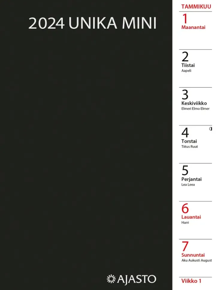 Taskukalenteri Unika Mini, Musta