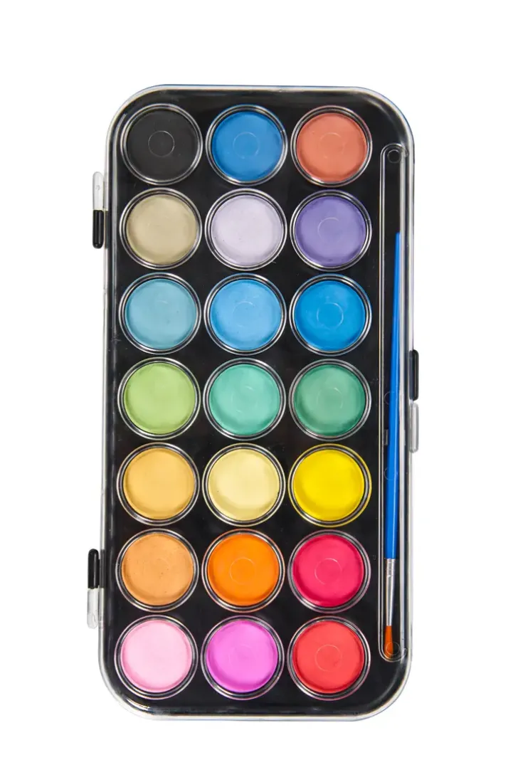Setti, Jossa Sivellin Ja 21 Kpl Vesivärejä.