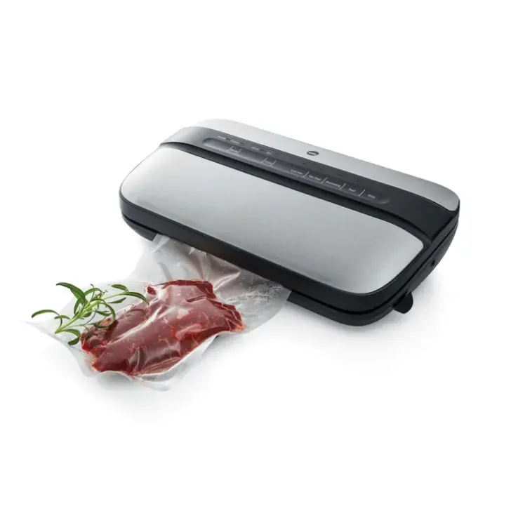 Wilfa Moose Tyhjiöpakkauslaite Vs-0824S – Laadukas Ja Monipuolinen Tyhjiöpakkauslaite!. Tyhjiöpakkaaminen Pidentää Elintarvikkeiden Säilyvyyttä Sekä Tuoreilla Että Pakastettavilla Ruoka-Aineilla Jopa Viisinkertaisesti. Tässä Mallissa On Erinomainen Tyhjiöinti-Tiivistys-Järjestelmä Joka Varmistaa, Että Pussi Suljetaan Täysin Tiiviisti. Näin Ruoka Säilyy Erittäin Hyvässä Kunnossa Ja Myös Suojaa Ruoka-Aineet Pakastamisen Aiheuttamilta Kylmävaurioilta.. Paitsi Säilyttämiseen Niin Jääkaapissa Kuin Pakastimessa, Moose Tyhjiöpakkauslaite Auttaa Ruoanvalmistuksessa. Tyhjiöpakkaaminen Paitsi Valmistelee Ruoan Sous Vide -Kypsennystä Varten, Myös Auttaa Marinoimaan Ruoan Tehokkaasti Ja Nopeasti. Tässä Laitteessa On Erillinen Marinointitoiminto, Jolla Marinoit Esimerkiksi Pihvin Todella Helposti Ja Nopeasti. Tutustu Sous Vide -Ruoanvalmistusoppaaseen!. Moose Tyhjiöpakkauslaitteessa On Kaksi Asetusta – “«Dry» Ja «Moist». Oletusasetuksena On Kuiville Ruoille Sopiva «Dry» Ja Painamalla Painiketta Voit Muuttaa Asetuksen Erityisesti Kosteille Ruoille Sopivaksi Asetukseksi «Moist». Voit Valita Sopivan Asetuksen Tyhjiöpakattavien Elintarvikkeiden Mukaan. Kosteat Ainekset Vaativat Pidemmän Sinetöintiajan Kuin Kuivat Ruoat. Lisäksi Voit Valita Joko Normaalin Tai Hellävaraisen Tyhjiöinnin – Moose Sopii Kaikenlaisille Ruoille Ja Elintarvikkeille, Myös Erittäin Herkille Ja Hauraille Aineksille. Sen Lisäksi Että Moose On Monipuolinen, On Se Myös Erittäin Käyttäjäystävällinen Malli. Laitteen Käyttäminen On Vaivatonta Ja Yksinkertaista – Käytön Helppoutta Lisää Integroitu Pussileikkuri Ja Vakuumirullan Säilytyspaikka: Voit Säilyttää Vakuumirullan Käytännöllisesti Laitteen Sisällä Ja Pussileikkurilla Saat Juuri Sopivan Kokoisen Pussin Kuhunkin Tarpeeseen Jokaisella Kerralla. Tällä Laitteella Onnistuu Omilla Toiminnoillaan Sekä Tyhjiöinti Ja Sinetöinti Tai Pelkästään Sinetöinti Esimerkiksi Vakuumirullia Käyttäessäsi. Alkuun Pääset Laitteen Mukana Toimitettavilla Viidellä Pussilla (20X30Cm) Ja Vakuumirullalla (20X200Cm). Voit Myös Käyttää Erillistä Astiaa Tämän Tyhjiöpakkauslaitteen Kanssa. Tämän Mahdollistaa Laitteen Mukana Toimitettava Letku. Moose Tyhjiöpakkauslaitteen Ominaisuudet: Tyylikäs Muotoilu – Kestävä Ja Vankka Laite. Korkea Kapasiteetti 24L/Min. 0,8 Barin Paine / 120W. Normaali Ja Hellävarainen Tyhjiöinti. Sopii Kaikenlaisille Ruoille, Kosteille Ja Kuiville. Täydellinen Niin Ruoan Säilytyksessä Kuten Valmistuksessa: Sous Vide &Amp; Marinointi. Integroitu Pussileikkuri Ja Säilytys Vakuumirullalle. Helppo Ja Turvallinen Käyttää. Pakkauksessa Mukana 5 Pussia (20X30Cm), 1 Vakuumirulla (20X200Cm), 1 Letku.