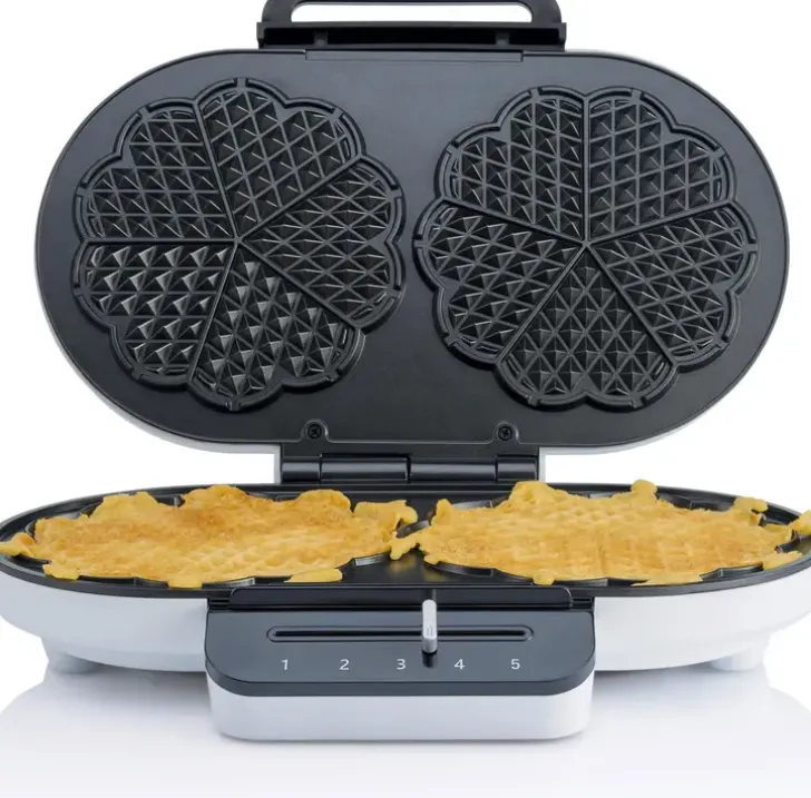 Puhtaan Valkoinen Kaksoisvohvelirauta 1200 Watin Teholla Paistaa Kaksi 16Cm Vohvelia, Joissa Kummassakin On 5 Vohvelisydäntä. Säädettävällä Termostaatilla (1-5) Voit Valita, Haluatko Vaalean, Kultaisen Vai Tumman Ja Rapean Vohvelin. Merkkivalo Ilmoittaa, Kun Vohvelit Ovat Valmiita. Kaksoispinnoitettujen Paistopintojen Ansiosta Rauta On Helppokäyttöinen Ja Helppo Puhdistaa. Takuu 2 Vuotta.