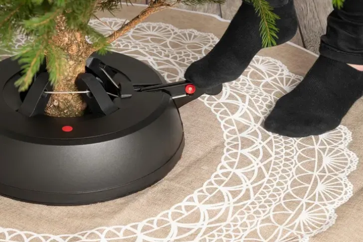 Kuusen Pystytys Ei Ole Koskaan Ollut Näin Helppoa! Jalalla Painettava 4 Osainen Teräsvaijeri Kiristysmekanismi. Max.Kuusen Korkeus 2,2M. Vesisäiliön Tilavuus 3,1L.. Soveltuva Rungon Halkaisija 30-130Mm.